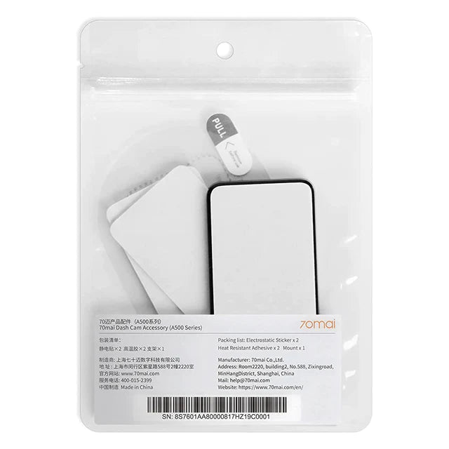 Entre las partes incluidas se encuentran dos pegatinas electrostáticas, dos adhesivos resistentes al calor y un soporte de cámara de salpicadero. Cada accesorios camara 70mai es crucial para el correcto funcionamiento de la cámara y es fácilmente reemplazable en caso de daño o desgaste.