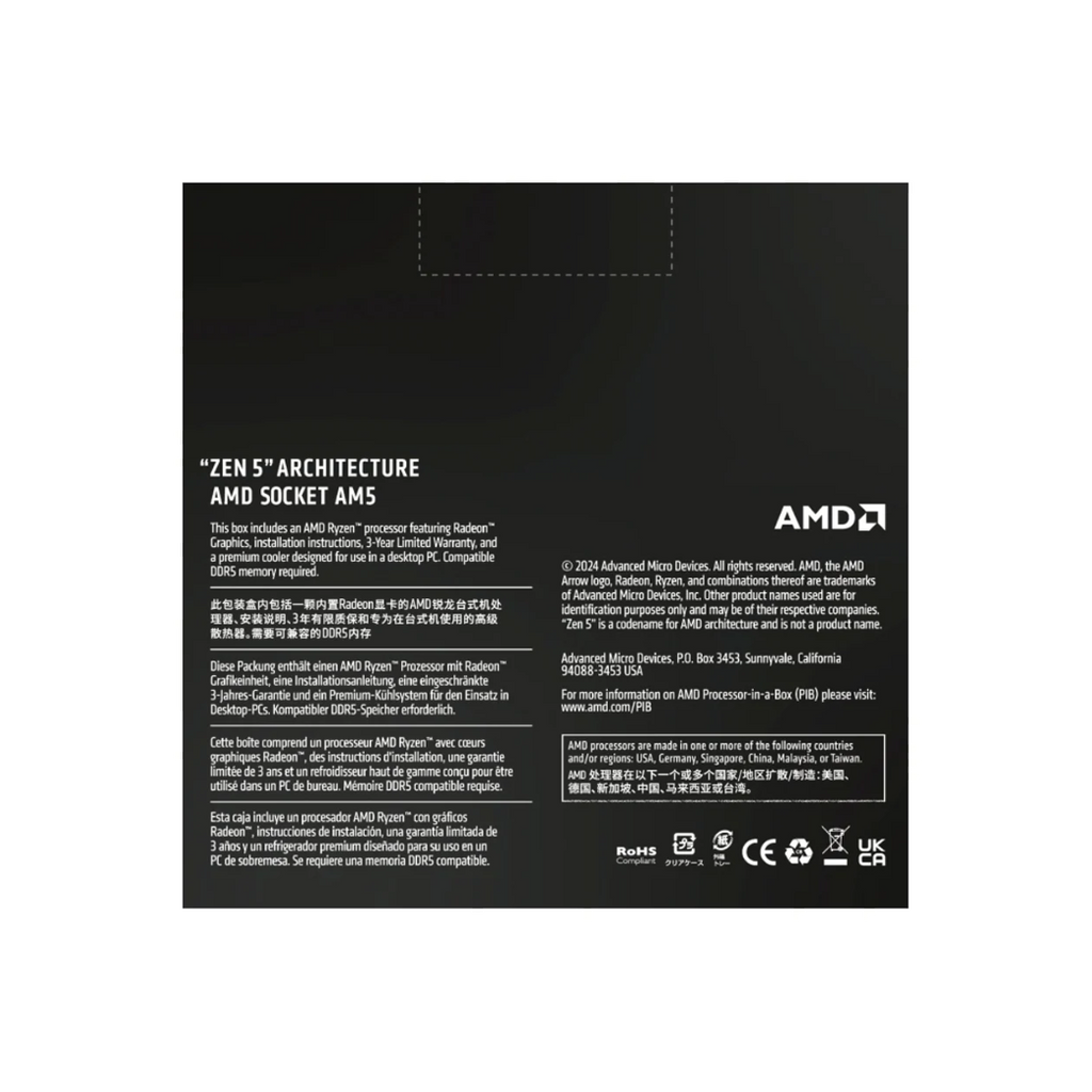 Cuenta con la arquitectura Zen 5 y 6 núcleos y 12 hilos para un rendimiento excepcional. Con una frecuencia máxima de 5.4 GHz y tecnología de procesador TSMC 4nm FinFET, alcanza una velocidad de procesamiento impresionante. Además, su capacidad de overclocking lo hace ideal para usuarios avanzados.