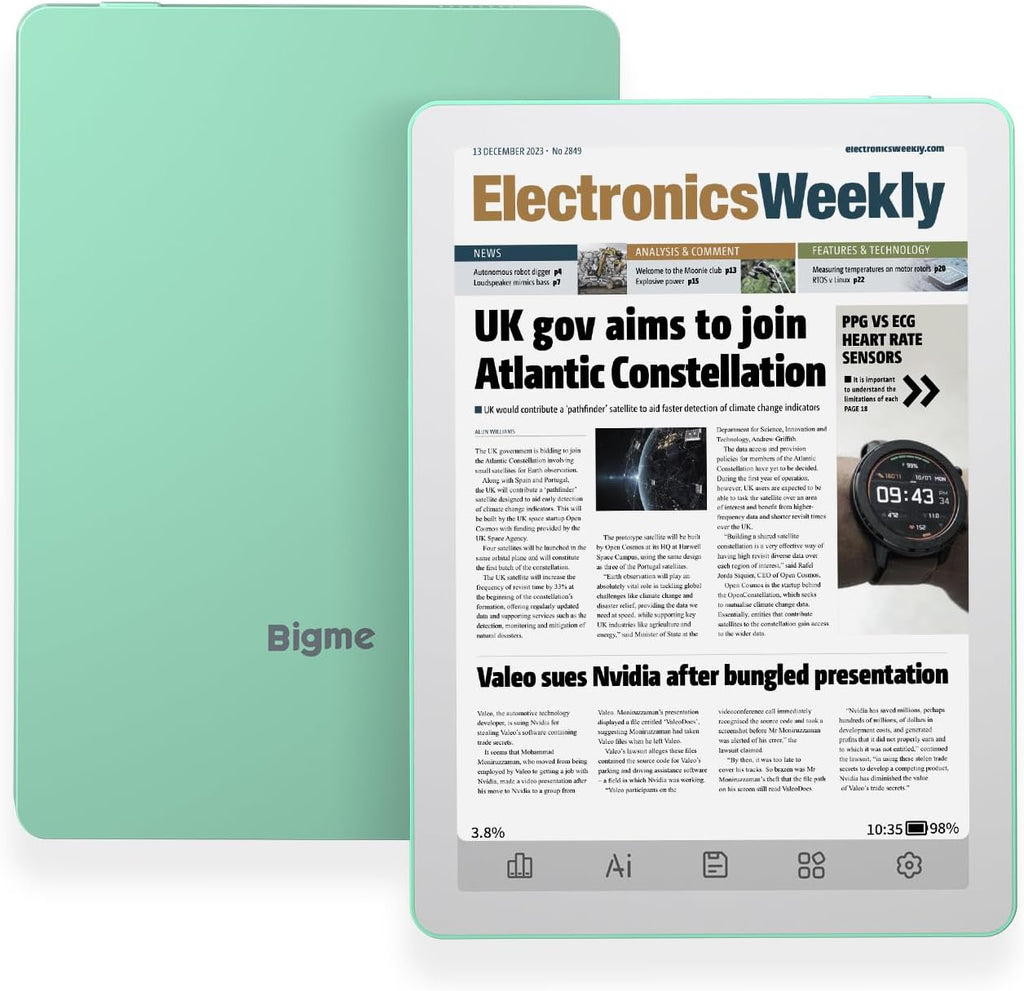 Descubre el nuevo E-Reader Bigme de 6 pulgadas. Compacto, ligero y potente. Gracias a su pantalla de Tinta Electrónica a Color y el sistema Android 14, es el compañero ideal para estudiantes y profesionales que quieren llevar miles de libros, cómics y documentos en la palma de la mano.