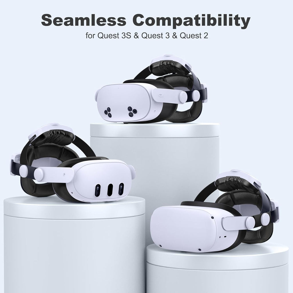 - Compatible con las nuevas Quest 3S/Quest 3/Quest 2: Hemos actualizado la correa para la cabeza de VR, que incluye dos juegos de cierres de conexión compatibles con Oculus Quest 3S/Quest 3/Quest 2. Puedes elegir el cierre adecuado para la correa de Quest 3/3S/Quest 2. Esta correa ergonómica para Meta Quest 3 reduce eficazmente la presión facial y te sumerge en el mundo virtual.