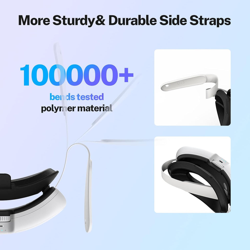 Cómodas almohadillas y correa de ajuste: La correa para la batería Quest 3S de la marca YOGES (actualizada en 2024) cuenta con suaves y gruesas almohadillas de cuero en la parte superior y trasera, y una perilla trasera que permite un ajuste rápido y preciso de la circunferencia de la cabeza, de 50 a 70 cm, lo que la hace más cómoda y adecuada.