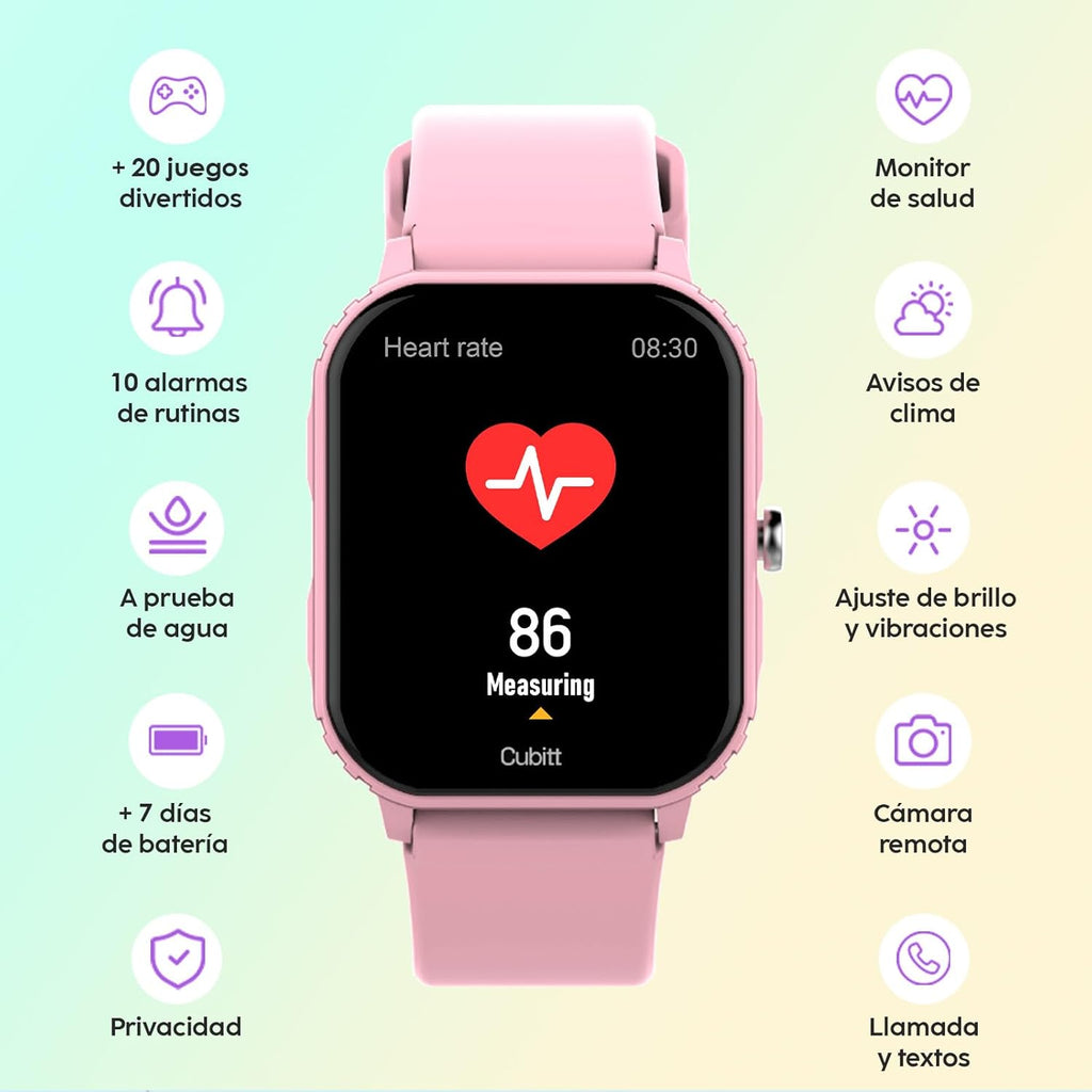 Tu estilo, tu ritmo, tu reloj. Tecnología que crece contigo con juegos, salud y conectividad.