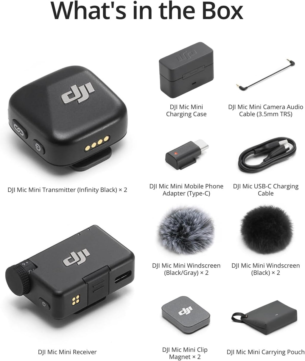 - **2 Transmisores DJI Mic Mini (TX).**