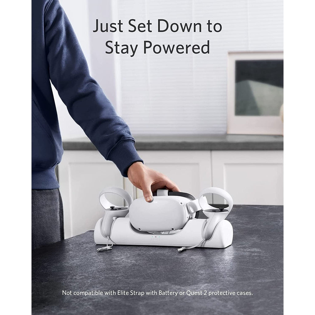 2. Después de completar una carga completa, su dock Anker mantendrá los controladores de Quest 2 ligeramente por debajo de un 100% de carga para maximizar la vida útil y la salud de la batería.