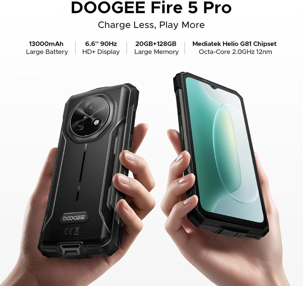 DOOGEE Fire 5 Pro - Celular Indestructible con Batería 13000mAh | 20GB RAM y 128GB