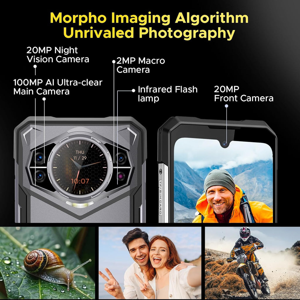 El DOOGEE S200 5G destaca por su diseño futurista con Pantalla Trasera AMOLED y una cámara de 100MP. Rendimiento robusto con Dimensity 7050 y batería de larga duración.