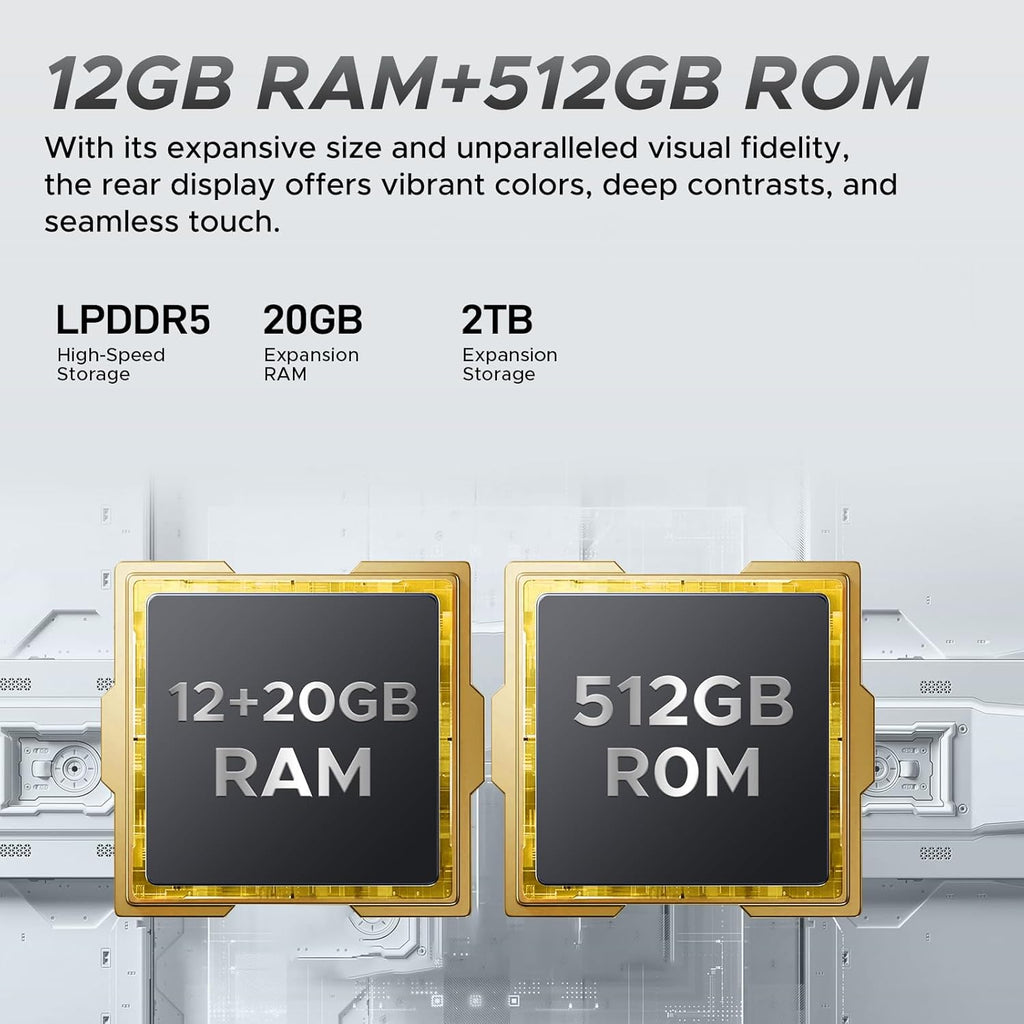 Velocidad de nueva generación. Memoria DDR5 (50% más rápida) con 32GB de RAM Total (12GB físicos + 20GB virtuales). Almacena todo en sus 512GB internos (expandibles a 2TB).