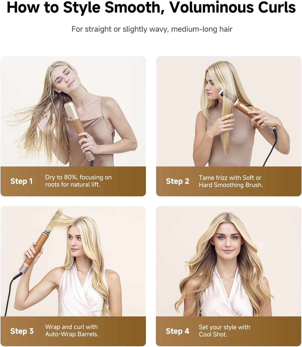 Desde rizos voluminosos hasta un liso espejo. Cambia de estilo en segundos con accesorios que se ajustan con un clic.