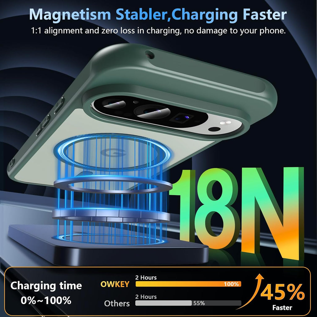 - 【Super Magnético】 Compatible con cargadores Magsafe y otros cargadores inalámbricos Qi sin afectar la señal. Con un potente imán integrado, la funda para Google Pixel 10/Pixel 10 Pro tiene una gran capacidad de adsorción. Solo tienes que colocar el teléfono en el cargador sin quitar la funda. La atracción magnética, perfectamente alineada, hace que la carga inalámbrica sea más rápida y estable. Diseñada exclusivamente para Google Pixel 10/Pixel 10 Pro de 6,3 pulgadas (modelo 2025).
