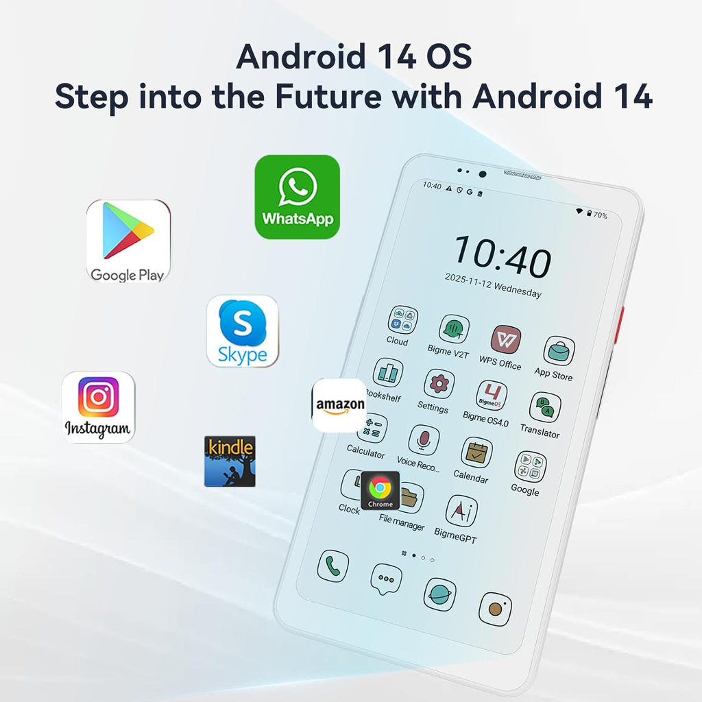 El Bigme HiBreak Pro combina lo mejor de dos mundos. Disfruta de una experiencia de lectura similar al papel con su pantalla E-Ink Color de 6.13", mientras navegas a máxima velocidad gracias a su conectividad 5G. Es el dispositivo definitivo para trabajar y entretenerse sin fatiga visual.