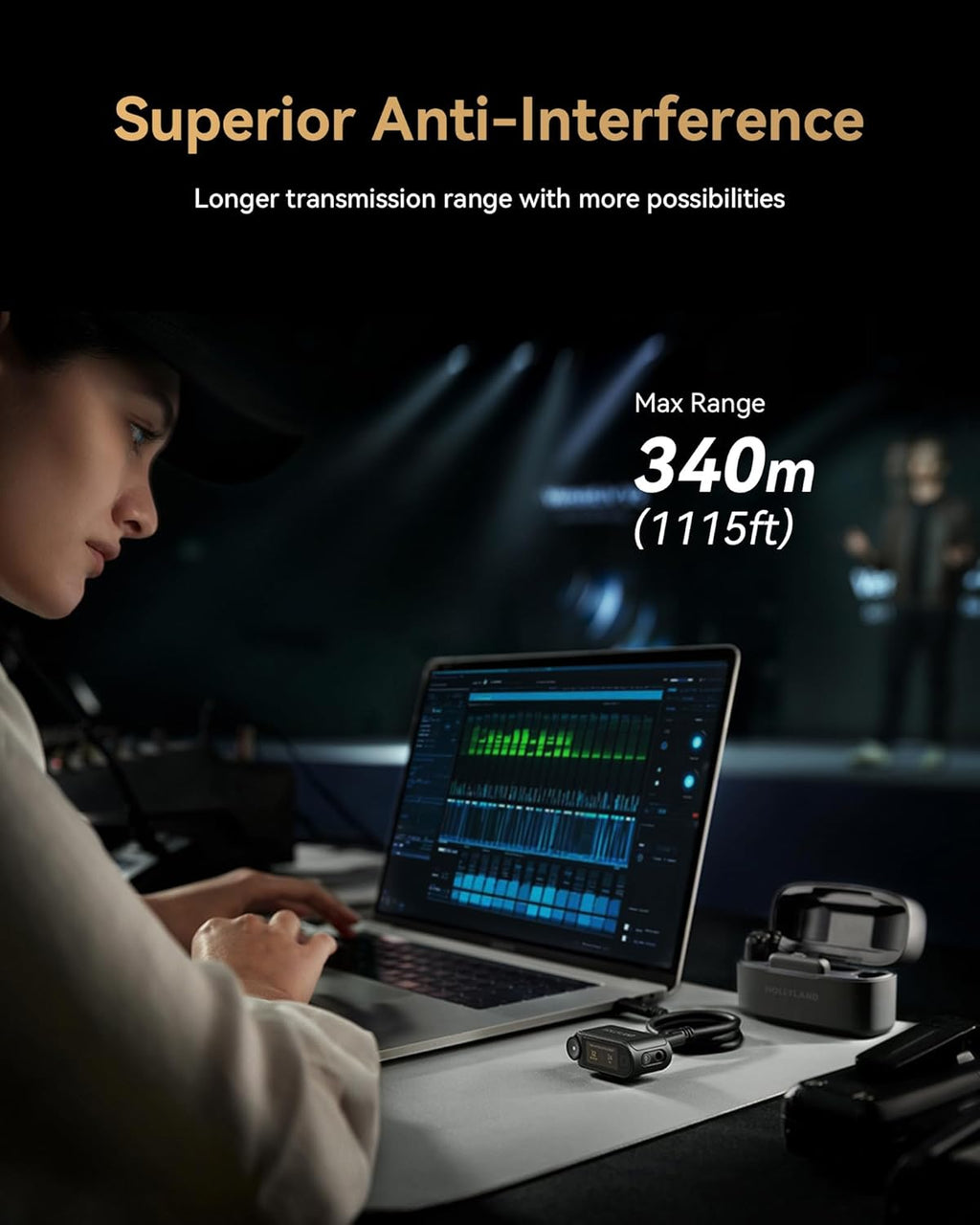 El LARK MAX 2 redefine la grabación profesional con su innovadora tecnología de monitoreo inalámbrico con audífonos OWS (Open-Ear). Experimenta libertad total con un rango de monitoreo de 100m y una latencia ultra baja de 25ms.