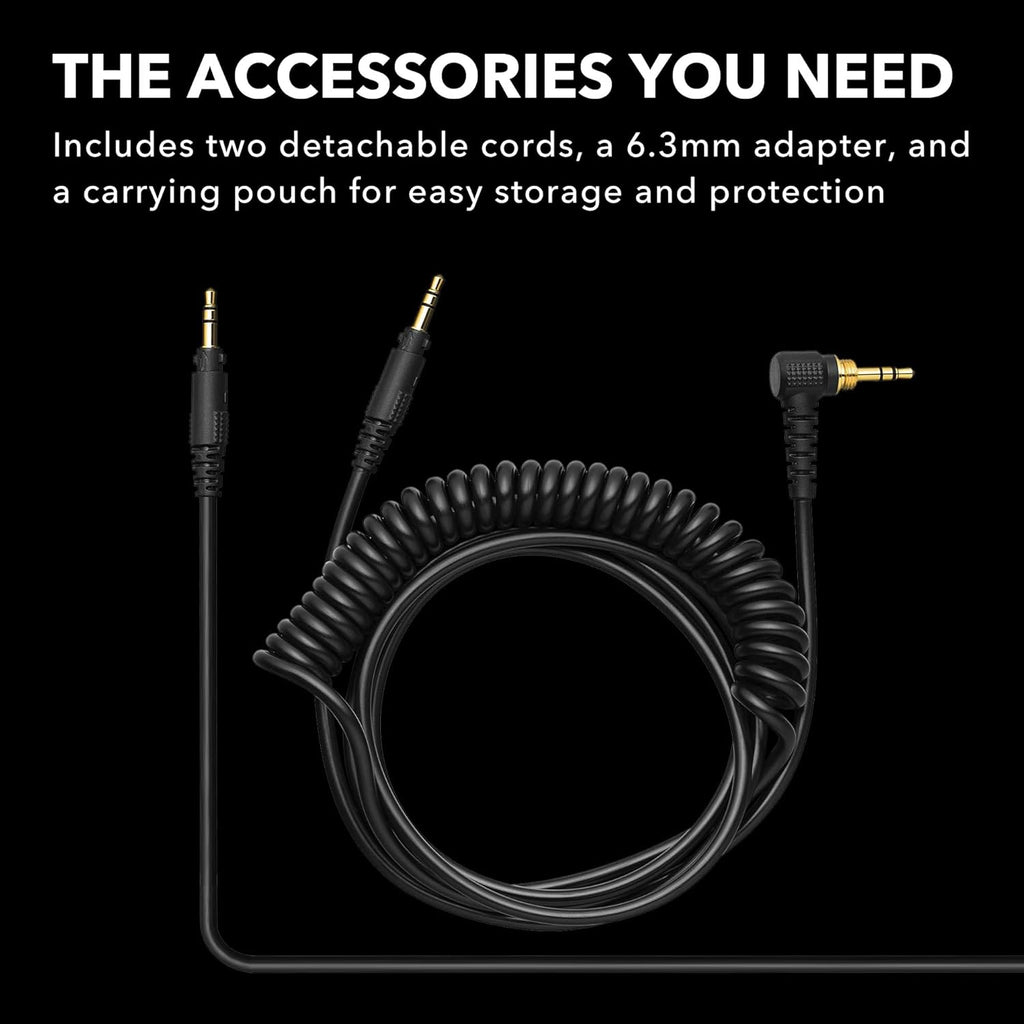 - Pro DJ Essentials Included: Professional monitoring accessories are included to complement the headphones a 1 5m detachable coiled cord 1 2m detachable straight cord and 6 3mm plug adaptor plus a handy carrying pouch for storage and protection
