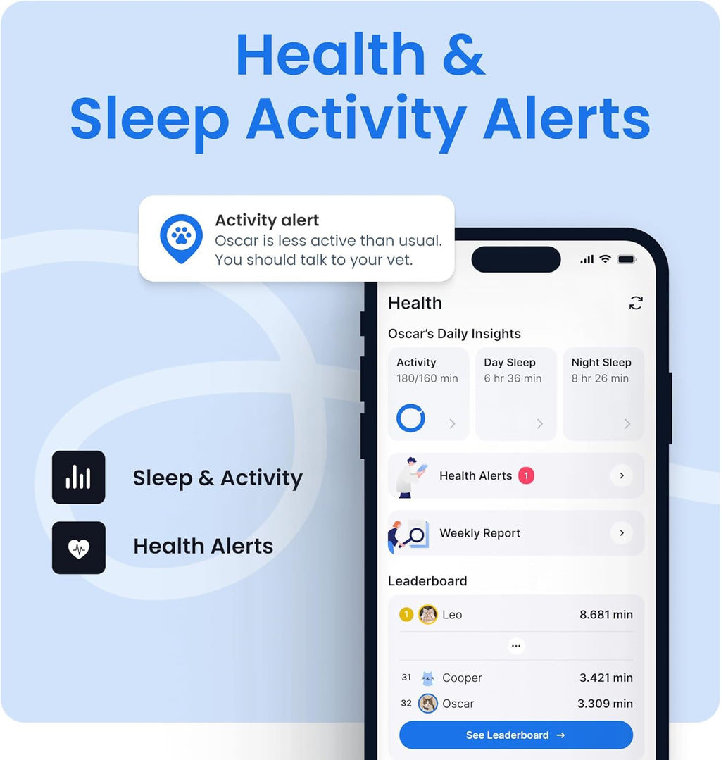 Descubre sus lugares favoritos y analiza sus rutas de paseo. Conoce mejor sus hábitos de sueño para asegurarte de que descanse como un rey.