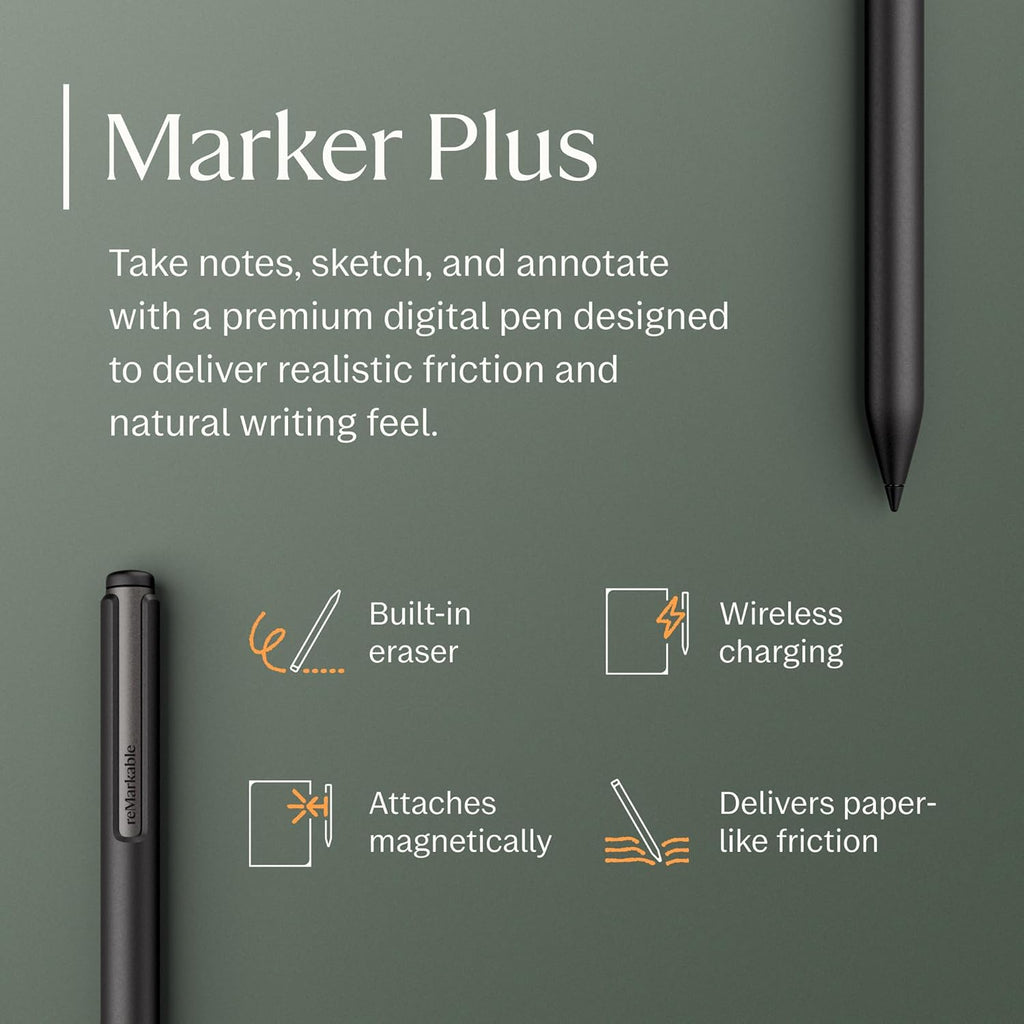 Siente la fricción realista del papel. Incluye el Marker Plus (con borrador integrado) para un control preciso y comodidad duradera.