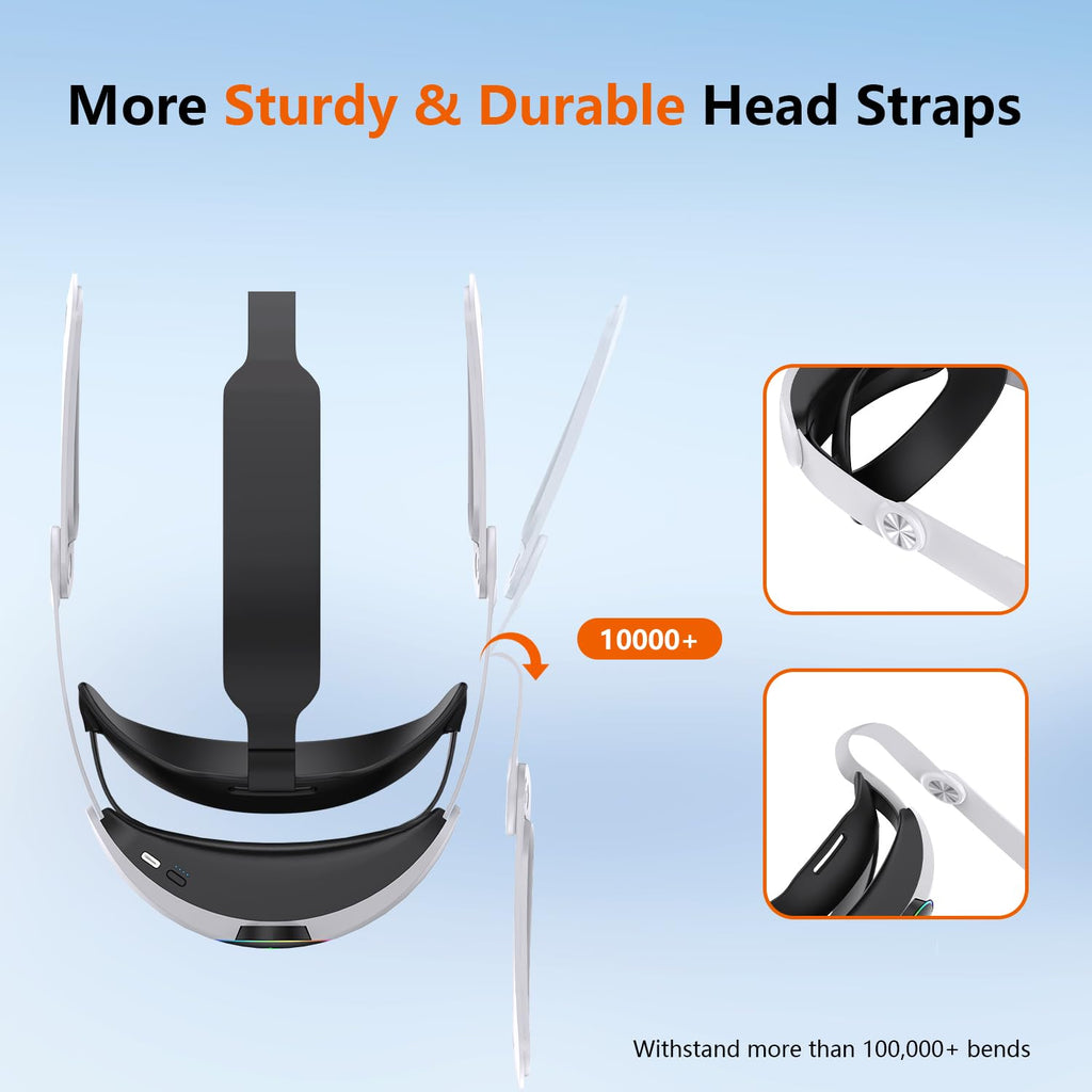 • Correa para la cabeza con batería de 10000 mAh: La batería integrada de 10000 mAh ofrece hasta el doble de tiempo de reproducción, solucionando el problema del consumo de energía de las Quest 3/3S y añadiendo de 4 a 6 horas de duración. Gracias a la interfaz USB-C, puedes cargar fácilmente los auriculares y la correa con un solo cable, ahorrando tiempo y esfuerzo.