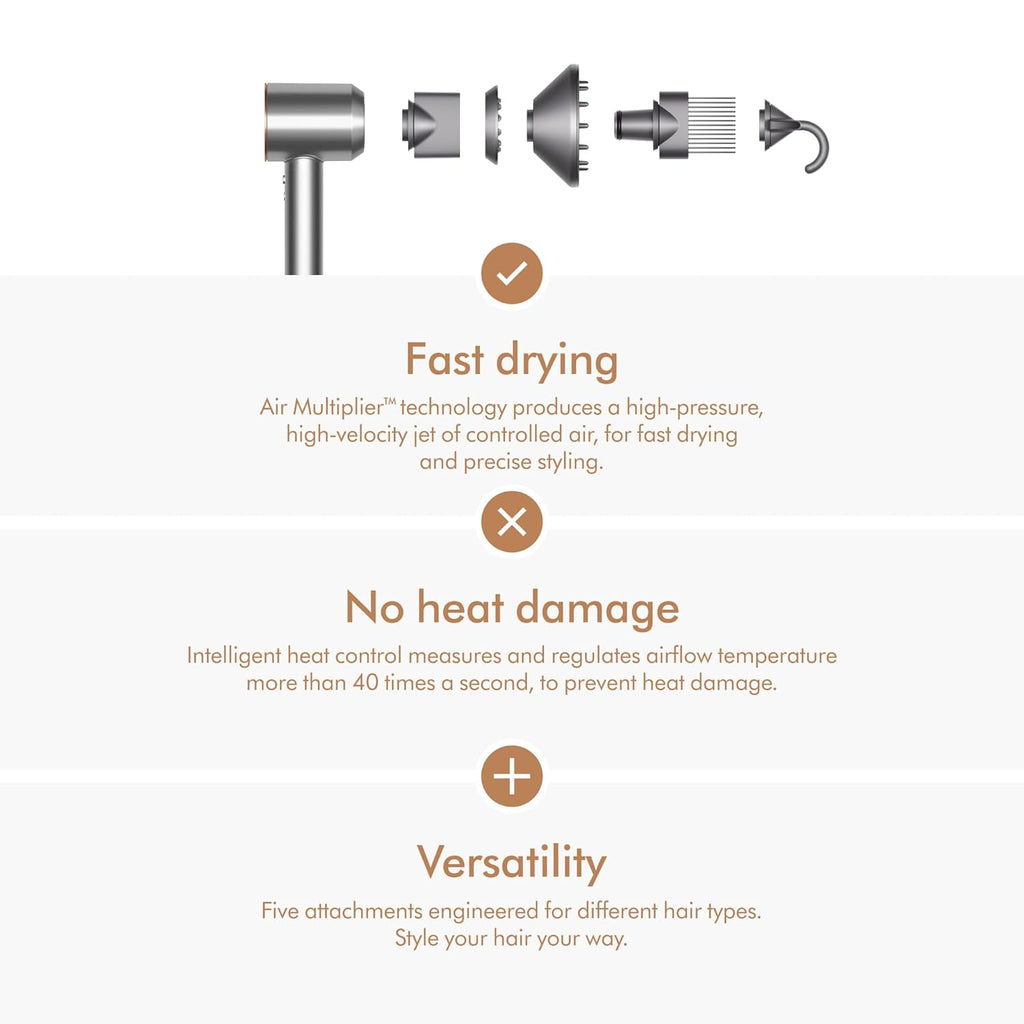 Secador de cabello Dyson Supersonic™ Control Inteligente de Calor con 5 Accesorios Magnéticos